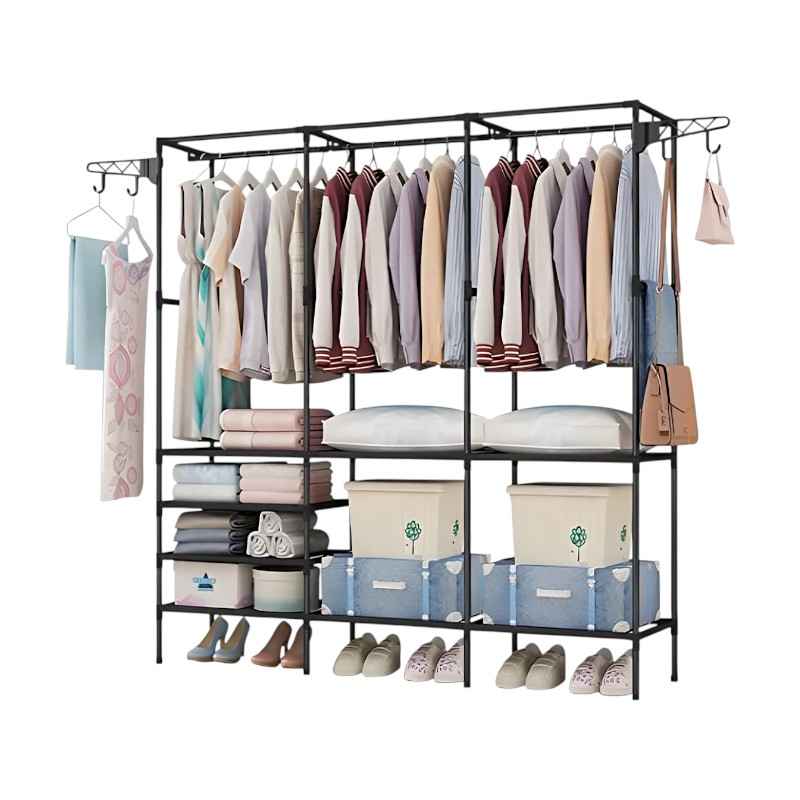 Κρεμάστρα δαπέδου με μεταλλικό σκελετό, με υφασμάτινα ράφια παπουτσιών και αξεσουάρ και έξτρα πτυσσόμενο γάντζο κρεμάσματος στα πλαϊνά,
