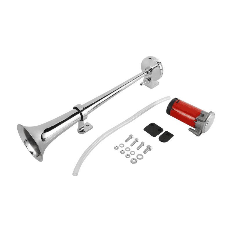Μονή Κόρνα Αέρος 150db ισχύος 12V. Διαθέτει δυνατό και διαπεραστικό ήχο. Είναι εύκολη στην τοποθέτηση σε σχεδόν όλα τα οχήματα. Με μεταλλική ανθεκτική κατασκευή με φινίρισμα χρωμίου. Κατάλληλη για αυτοκίνητα, φορτηγά, βάρκες και μοτοσυκλέτες.