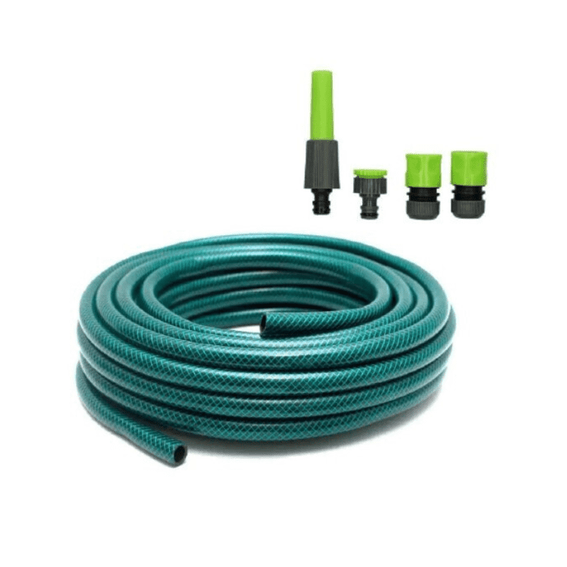 Λάστιχο ποτίσματος, εύκαμπτο και ιδιαίτερα ανθεκτικό, κατάλληλο για επαγγελματική ή οικιακή χρήση. Διαθέτει πλήρες σετ 4 τεμαχίων με εξάρτημα ποτίσματος και ταχυσύνδεσμο βρύσης. Διάμετρος: 1/2”. Μήκος: 15m.