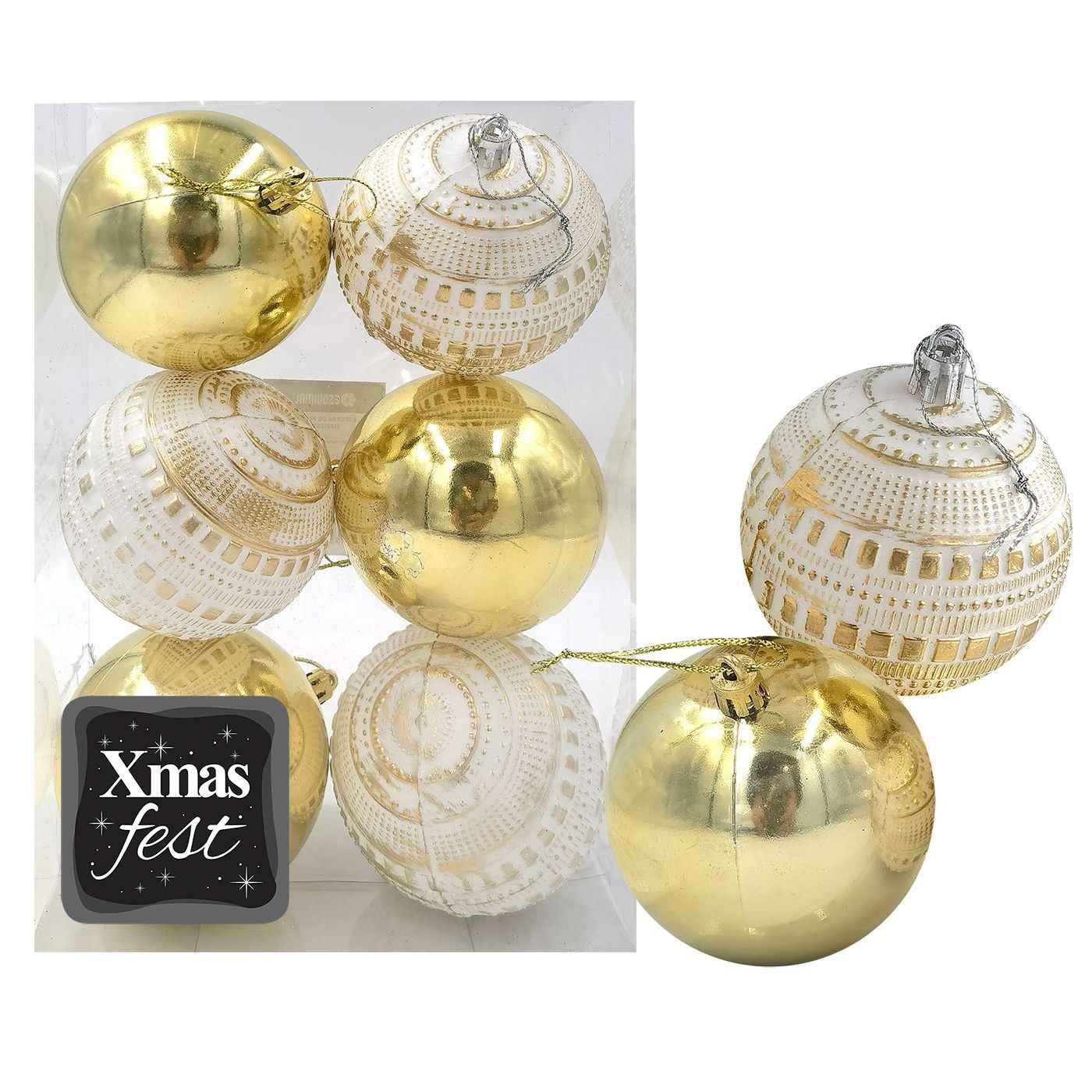 Μπάλες Ανάγλυφες Αντικέ μιξ με Χρυσές πακ=6τεμ φ7 ø7cm Xmasfest 1133586