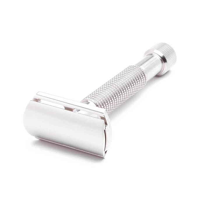 Το καπάκι, η προστασία και η λαβή, που έχουν κατασκευαστεί με ακρίβεια, αποσυναρμολογούνται εύκολα για να δεχτούν τυπικές διπλής λεπίδας ξυριστικές λεπίδες.