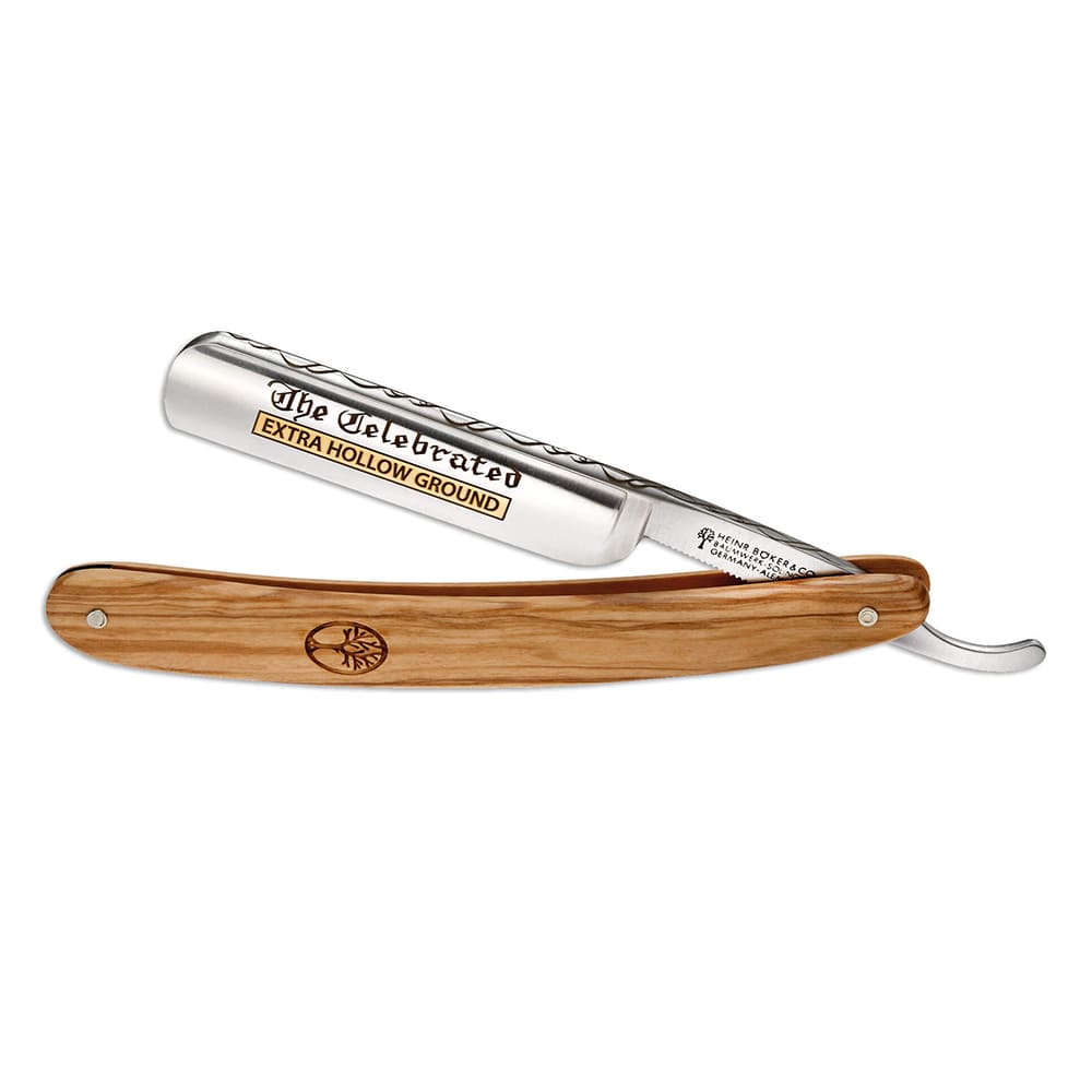 Επανέκδοση ενός από τα πιο διάσημα μοντέλα στην ιστορία της μάρκας Boker. Ήδη παρόν στον κατάλογο προϊόντων Boker του 1906. Το ξυράφι ελεύθερου χεριού The Celebrated Olive, με λαβή από πολύτιμο ξύλο, διαθέτει τη δημοφιλή λεπίδα 5/8 ιντσών και είναι κατασκευασμένο από ανθρακούχο ατσάλι που στη συνέχεια διακοσμείται. Περιλαμβάνει πιστοποιητικό αυθεντικότητας και ιστορική συσκευασία.