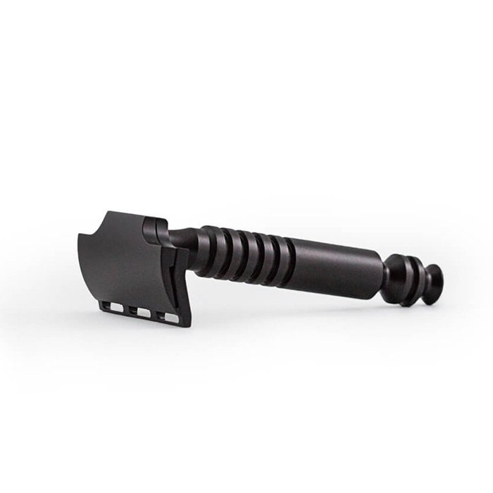 Κατασκευασμένο από συμπαγές ανοδιωμένο αλουμίνιο και κατεργασμένο με CNC, έχει σχεδιαστεί για να χρησιμοποιείται με κοινές μισές λεπίδες για ξυριστικές μηχανές ασφαλείας.