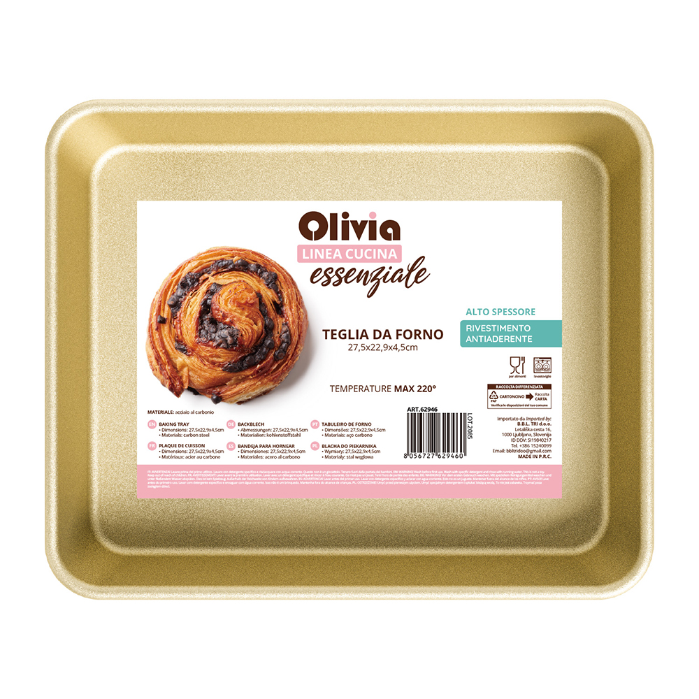 Το Ταψί φούρνου Olivia της σειράς Κουζίνα Βασική MODO έχει σχεδιαστεί για να σας συνοδεύει στην προετοιμασία των καθημερινών συνταγών με πρακτικότητα, αντοχή και πάντα ομοιόμορφα αποτελέσματα. Το ορθογώνιο μέγεθός του 27,5 x 22,9 x 4,5 εκ είναι ιδανικό για λαζάνια, αλμυρές τάρτες, ψητά, λαχανικά στο φούρνο, ψάρι, γλυκά και όλες εκείνες τις παρασκευές που απαιτούν ομοιόμορφο ψήσιμο και τέλεια συγκράτηση υγρών.
