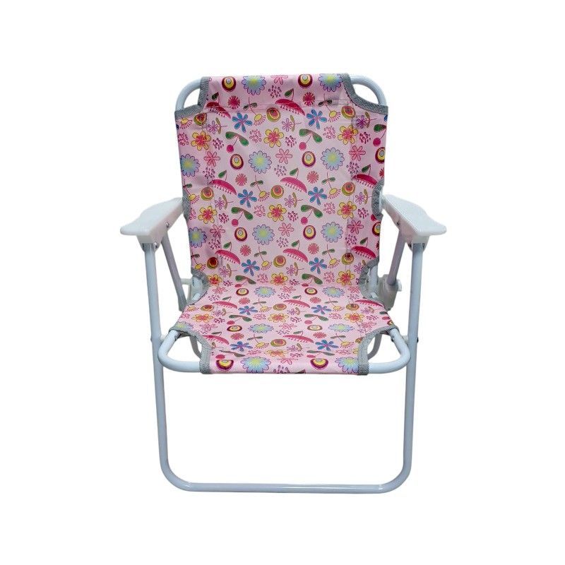 Παιδική πτυσσόμενη καρέκλα camping με ανθεκτικό, αδιάβροχο ύφασμα και σιδερένιο σκελετό που διπλώνει με μία κίνηση. Διαθέτει μπράτσα και καθαρίζεται εύκολα — ιδανική για παραλία, camping και κήπο.