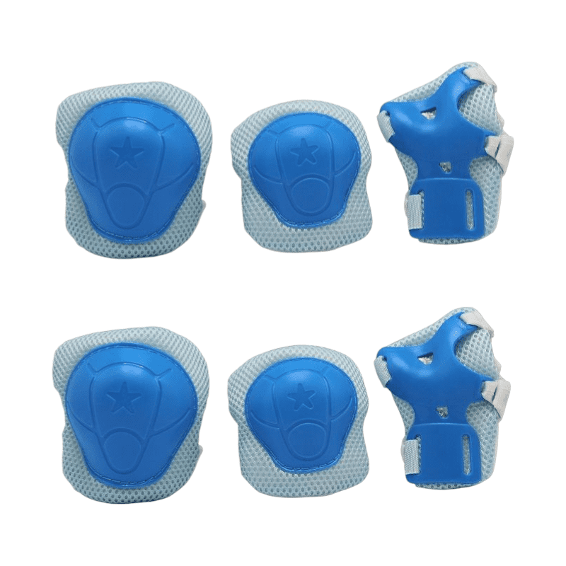 Πλήρες παιδικό σετ 6 τεμαχίων με προστατευτικά γονάτων, αγκώνων και καρπών, ιδανικό για κάθε είδους αθλητικές δραστηριότητες: ποδηλασία, skatebord, rollers, πατίνι, ομαδικά αθλήματα κτλ. Διαθέτουν σκληρό ανθεκτικό κάλυμμα που προστατεύει πλήρως από χτυπήματα και μαλακή εσωτερική επένδυση που απορροφά τους κραδασμούς και εφαρμόζει σταθερά και με άνεση, χωρίς ενοχλήσεις.