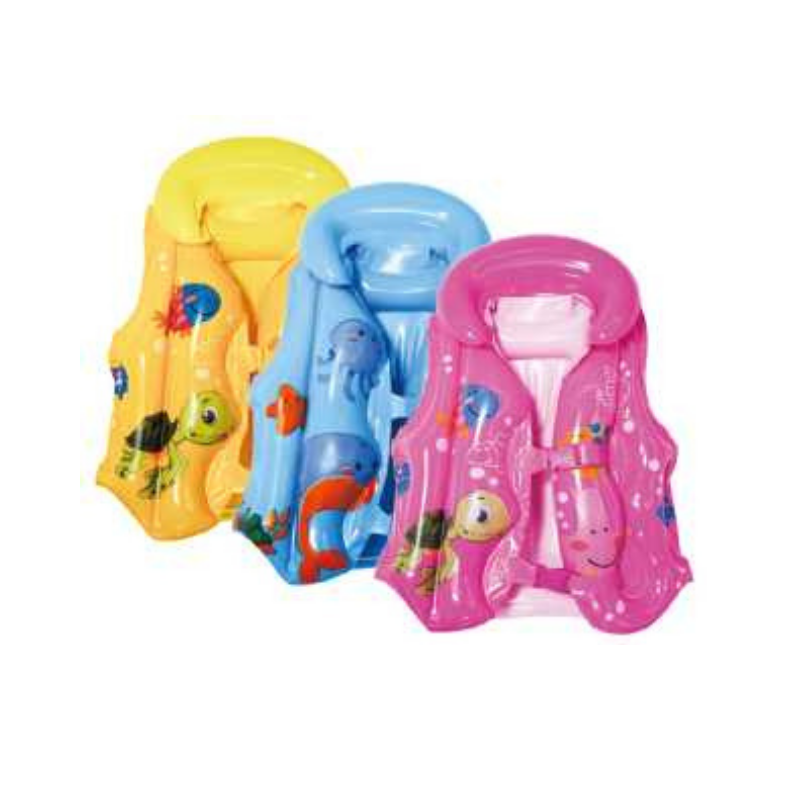 Φουσκωτό σωσίβιο γιλέκο με κινούμενα σχέδια. Με έξτρα ενίσχυση αυχένα και κούμπωματα ασφαλείας. Κατασκευασμένο από μαλακό, ανθεκτικό PVC, μη τοξικό, απόλυτα φιλικό στο δέρμα. Άνετη και σταθερή εφαρμογή. Μέγεθος 60cm.
