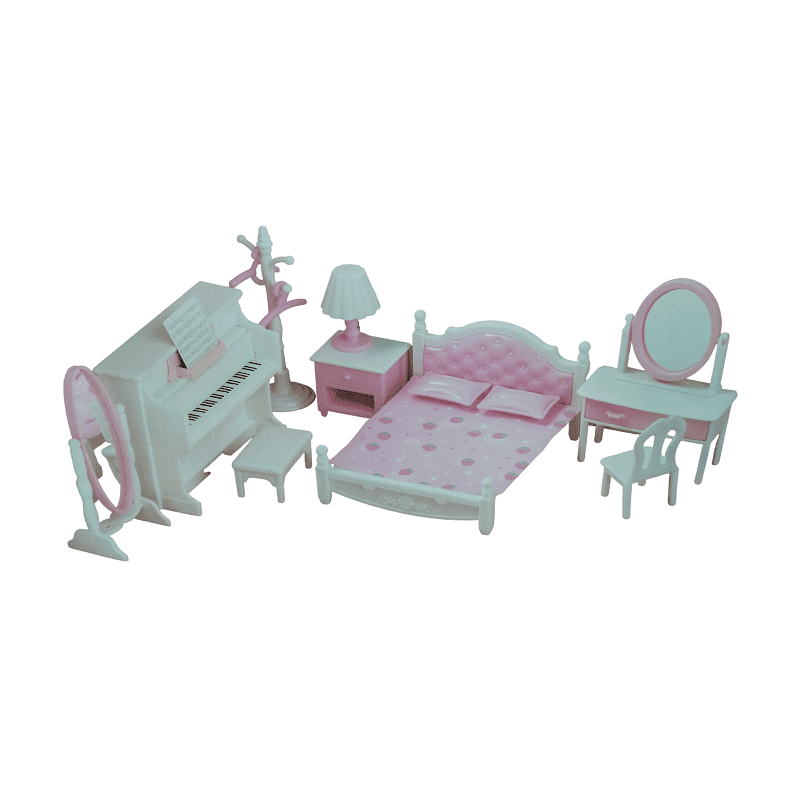 Πλήρες σετ κρεβατοκάμαρας με έπιπλα και πολλά αξεσουάρ για να διακοσμήσετε την κούκλα σας.