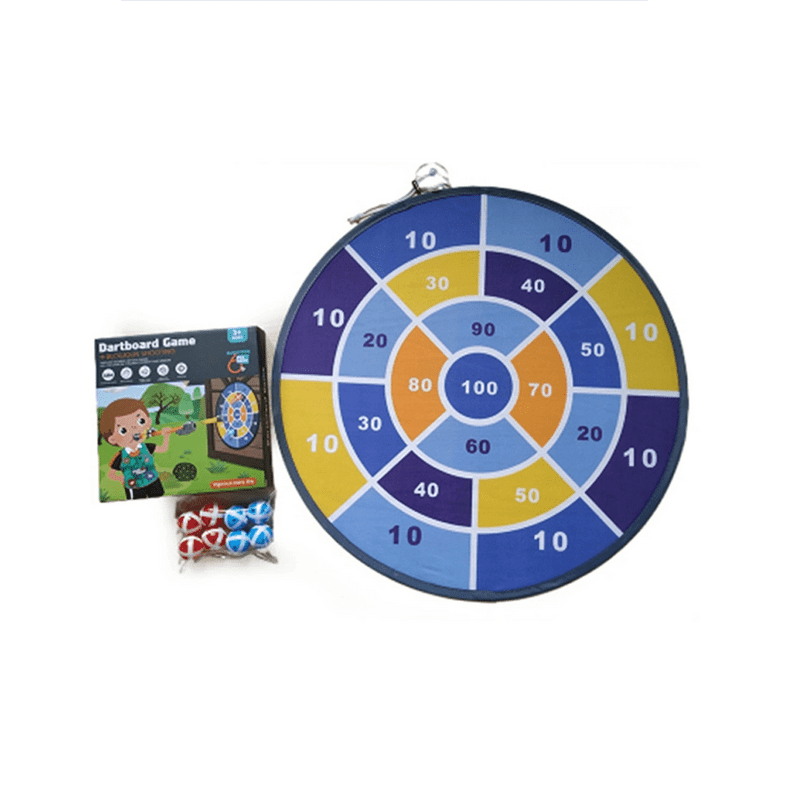 Παιδικό παιχνίδι στόχου με στρογγυλό υφασμάτινο πίνακα-στόχο και 8 μαλακά μπαλάκια με velcro.