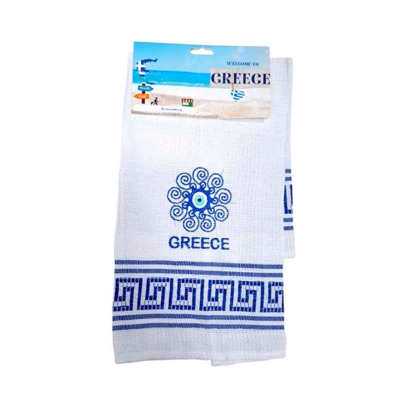 Σετ 12 πετσέτες-ποτηρόπανα με κεντημένα θεματικά σχέδια της Ελλάδας, κατασκευασμένες από 75% βαμβάκι και 25% πολυεστέρα. Πολύ μαλακές και απορροφητικές, ιδανικές ως σουβενίρ ή δώρο.