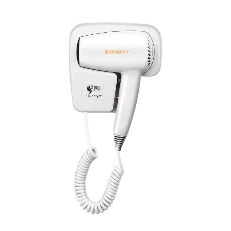 Πιστολάκι μαλλιών Jamaky με επιτοίχια εγκατάσταση, ειδικά σχεδιασμένο για ξενοδοχειακές μονάδες.