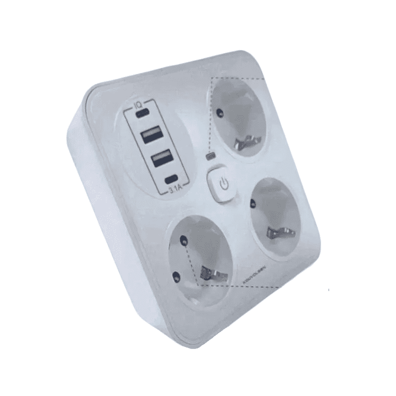 Πολύπριζο 3 θέσεων σούκο, με διακόπτη, 2 θύρες USB και 2 θύρες Type-C.