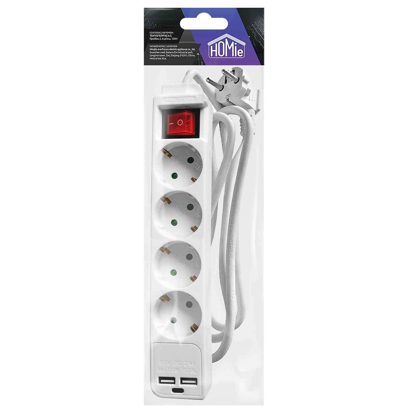 4θέσεων + 2USB + 1type C 1,5m (3×1.5mm2)