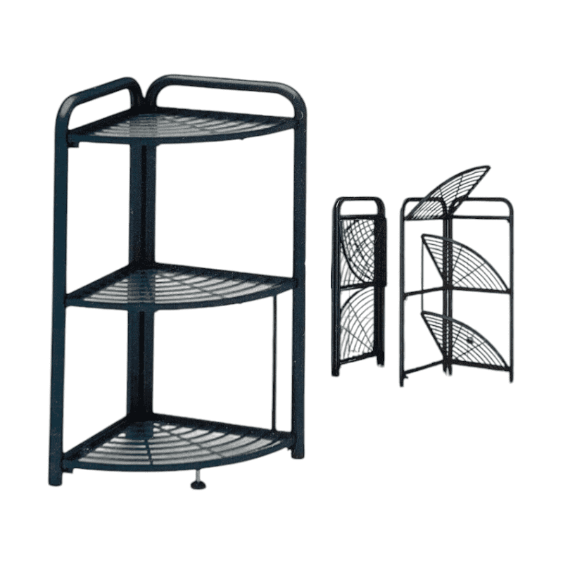 Μεταλλική ραφιέρα 5 επιπέδων γωνιακή, πτυσσόμενη για εύκολη αποθήκευση, ιδανική για την κουζίνα ή την αποθήκη. Διαστάσεις: 85 x 51 x 35 cm. Ύψος ραφιών: 34cm