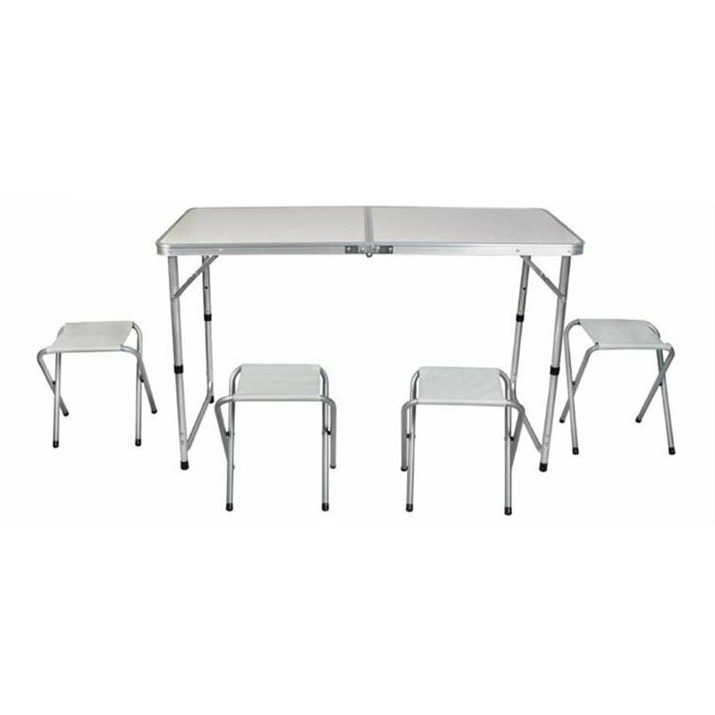 Σετ τραπέζι camping πτυσσόμενο με 4 σκαμπό, με ρυθμιζόμενο ύψος 2 επιπέδων.