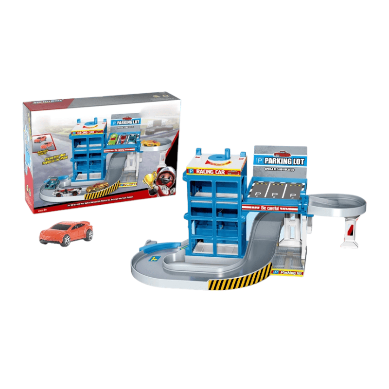 Αυτοκινητόδρομος πίστα-πάρκινγκ με οχήματα και αξεσουάρ.