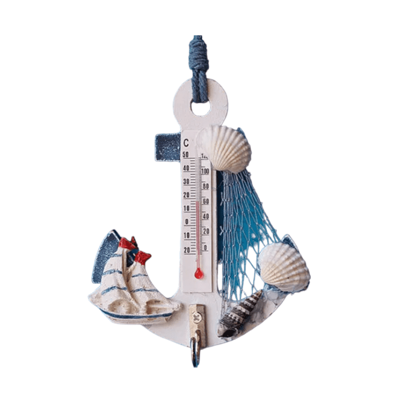 Χειροποίητο, διακοσμητικό Souvenir, επιτοίχιο με μεταλλική κρεμάστρα ρούχων και θερμόμετρο.