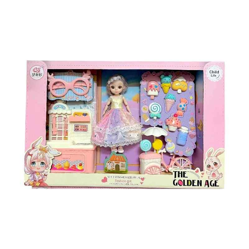Σετ κούκλα σε vintage στυλ, με πλήρες σετ αξεσουάρ κουζίνας και ποδήλατο παγωτού, σε υπέροχο πολύχρωμο σχεδιασμό!