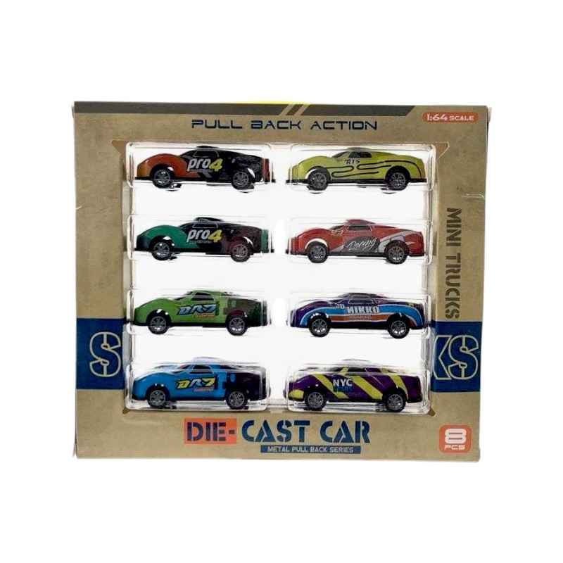 Μεταλλικά αυτοκινητάκια, σετ 8 τεμαχίων, σε διάφορα πολύχρωμα σχέδια και ποικιλία σχεδιασμού, με Pull Back.