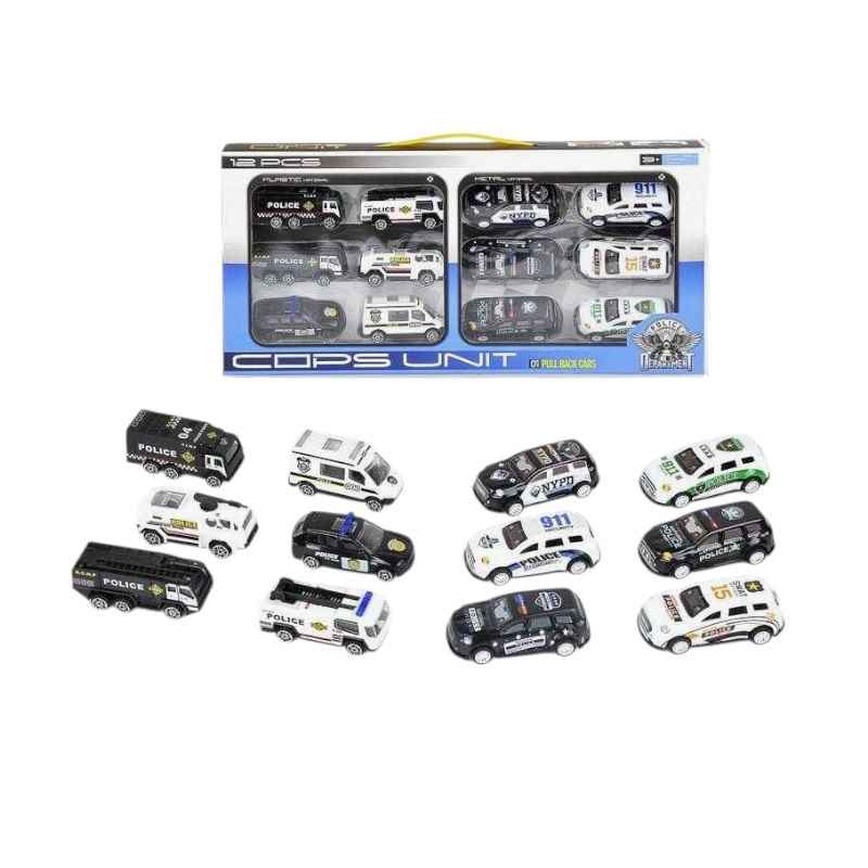 Μεταλλικά αυτοκινητάκια, σετ 12 τεμαχίων, σε διάφορα πολύχρωμα σχέδια και ποικιλία σχεδιασμού, με Pull Back.
