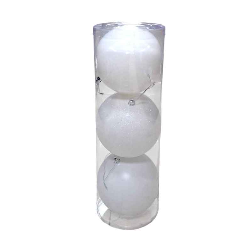 Σετ 3 χριστουγεννιάτικες μπάλες 15cm σε λευκό, ιδανικές για στολισμό δέντρων, τραπεζιών και επιτραπέζιων διακοσμήσεων εσωτερικού χώρου.