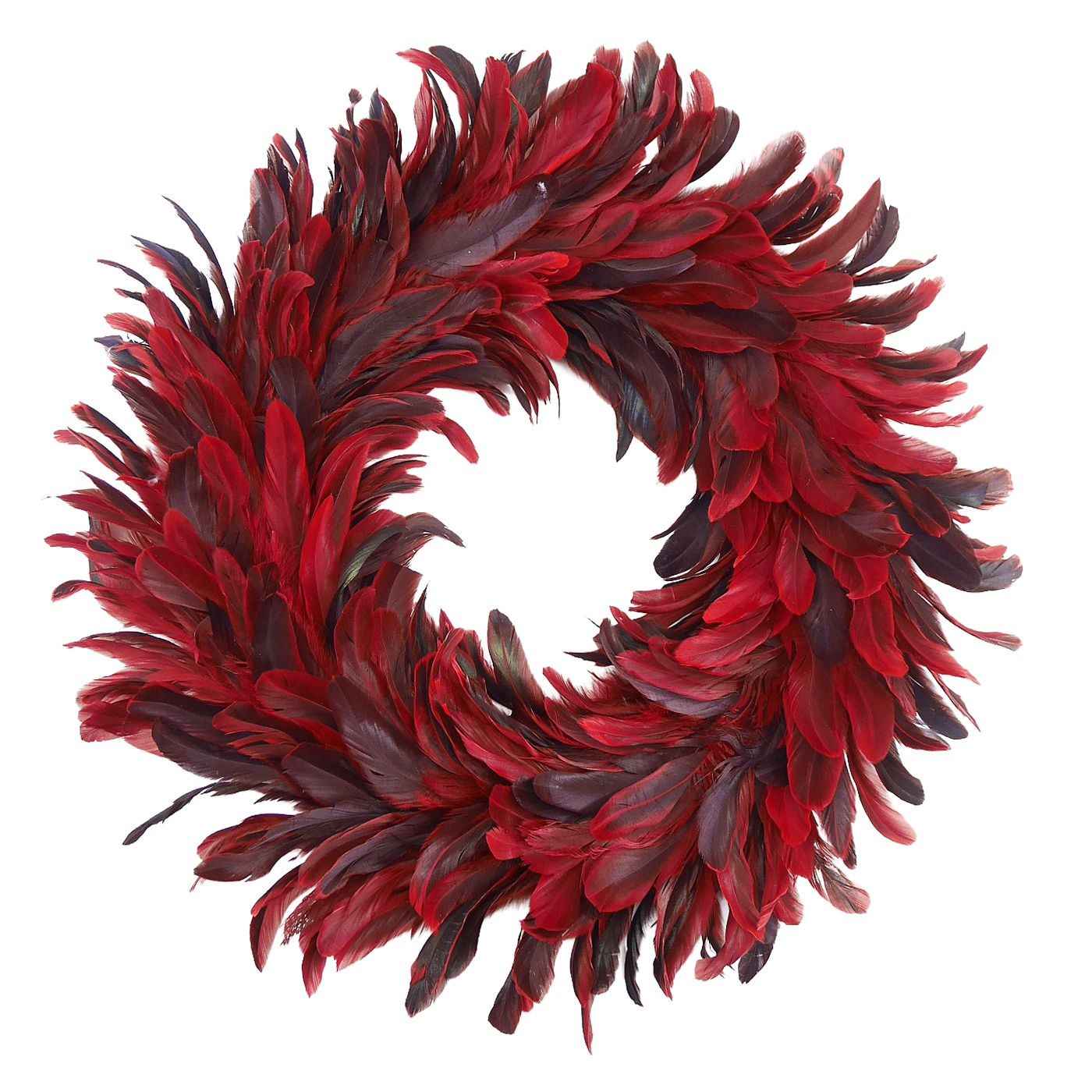Αποτελείται από κόκκινα φτερά και πούπουλα, όπως αναφέρεται στην περιγραφή.