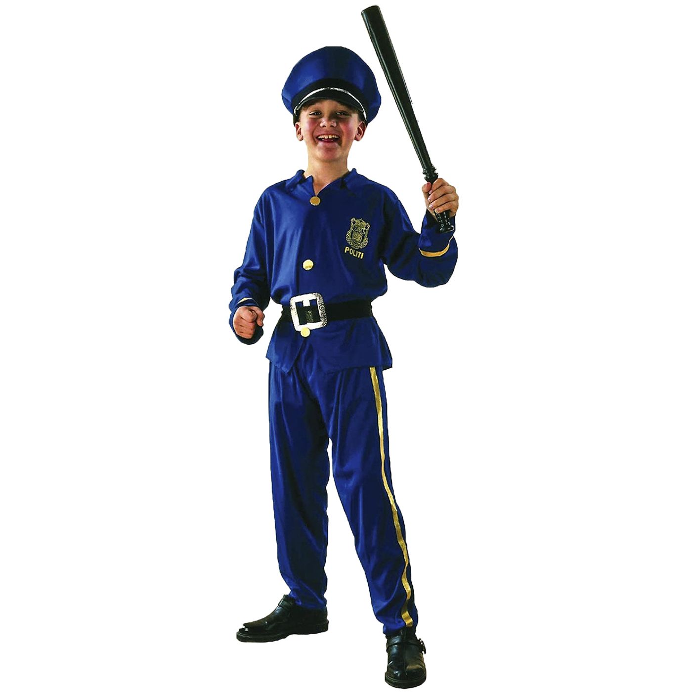 Costume da poliziotto per bambini set camicia, pantaloni, cintura e cappello. Ideale per Carnevale e giochi teatrali, facile da indossare e resistente per un uso ripetuto.