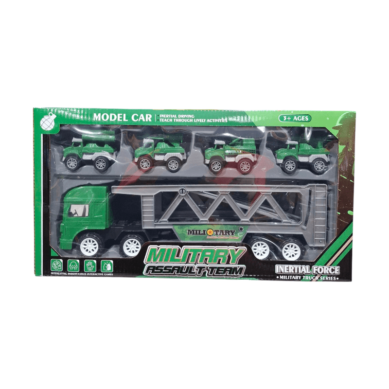 Σετ οχημάτων στρατού, με όχημα μεταφοράς, σε υπέροχο ρεαλιστικό σχεδιασμό, με πολλαπλές δυνατότητες και ανθεκτική κατασκευή, για ένα συναρπαστικό παιχνίδι με όλη τη παρέα!