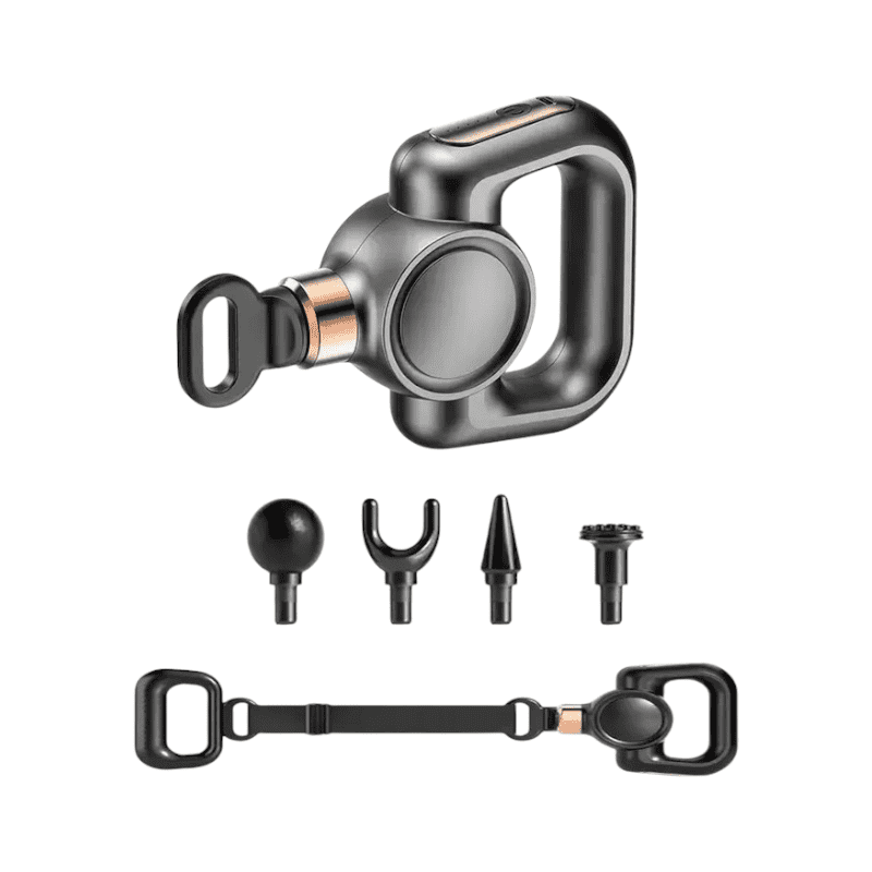 Επαναστατική συσκευή μασάζ και μυοχαλάρωσης Fascial Gun με εναλλασσόμενες κεφαλές και ιμάντα πλάτης και αυχένα, για εφαρμογή σε όλα τα σημεία του σώματος που επιθυμείτε.