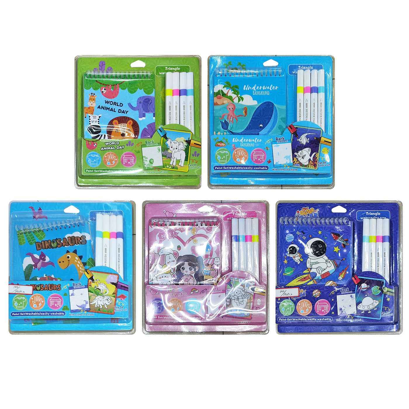 Σπιράλ τετράδιο 25×25 cm και 4 μαρκαδόροι, συνολικά 5 τεμάχια.