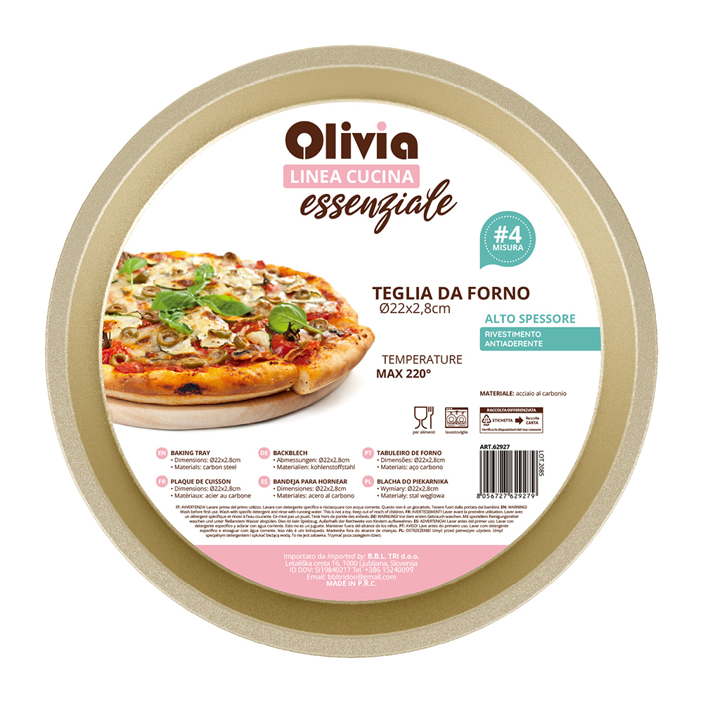 Το στρογγυλό ταψί φούρνου Olivia έχει σχεδιαστεί για όσους θέλουν ένα συμπαγές, ευέλικτο και εύκολο στη χρήση καλούπι καθημερινά. Με διάμετρο 22 εκ και ύψος 2,8 εκ, είναι ιδανικό για τάρτες, κις, μικρά τσιζκέικ, αλμυρές και γλυκές τούρτες με μερίδες, αποτελώντας τον τέλειο σύμμαχο για γρήγορες συνταγές και ατομικές μερίδες.