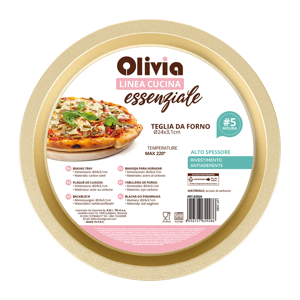 Το στρογγυλό ταψί φούρνου Olivia είναι το ιδανικό καλούπι για όσους επιθυμούν ένα συμπαγές, ανθεκτικό και πολυχρηστικό αξεσουάρ για καθημερινή χρήση στην κουζίνα. Με διάμετρο 24 εκ. και ύψος 3,1 εκ., είναι τέλειο για τάρτες, κις, μικρά τσιζκέικ, αλμυρές πίτες, χαμηλές φοκάτσιες και ατομικά γλυκά.