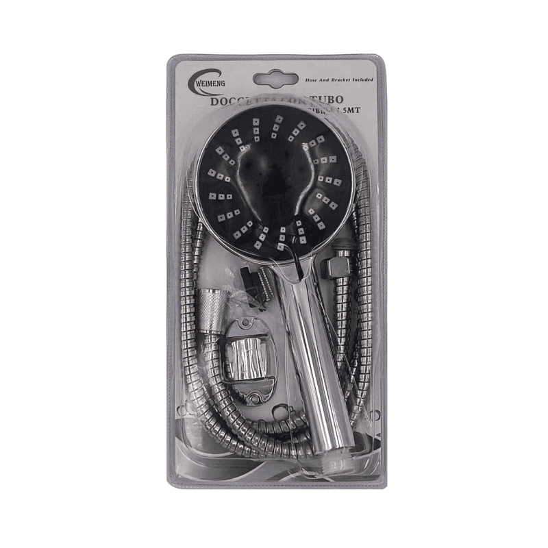 Τηλέφωνο-ακροφύσιο ντουζιέρας με 3 επιλογές πίεσης και σπιράλ σωλήνα μήκους 1.5 μέτρου, με επιτοίχια βάση και όλα τα παρελκόμενα τοποθέτησης.