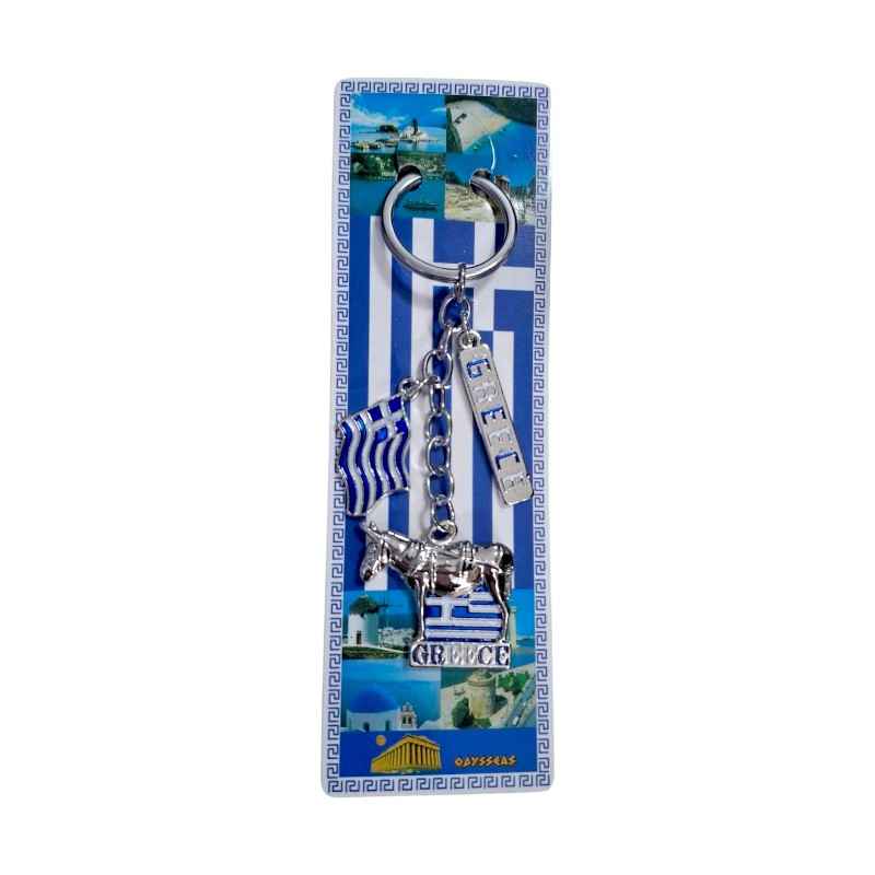 Τουριστικό μπρελόκ Souvenir Greece, κατασκευασμένο από ανοξείδωτο ατσάλι και υψηλής ποιότητας υλικά, με εντυπωσιακά ανάγλυφα σχέδια που αντιπροσωπεύουν την Ελλάδα.    Πακέτο 12 τεμαχίων.   Μήκος: περ. 12cm.