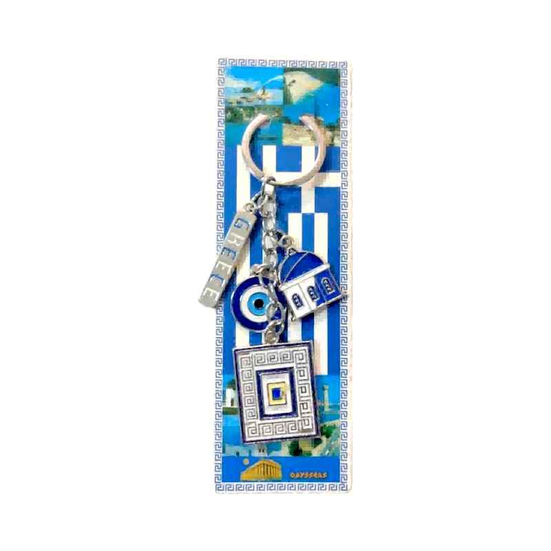 Τουριστικό μπρελόκ Souvenir Greece, κατασκευασμένο από ανοξείδωτο ατσάλι και υψηλής ποιότητας υλικά, με εντυπωσιακά ανάγλυφα σχέδια που αντιπροσωπεύουν την Ελλάδα.    Πακέτο 12 τεμαχίων.   Μήκος: περ. 12cm.