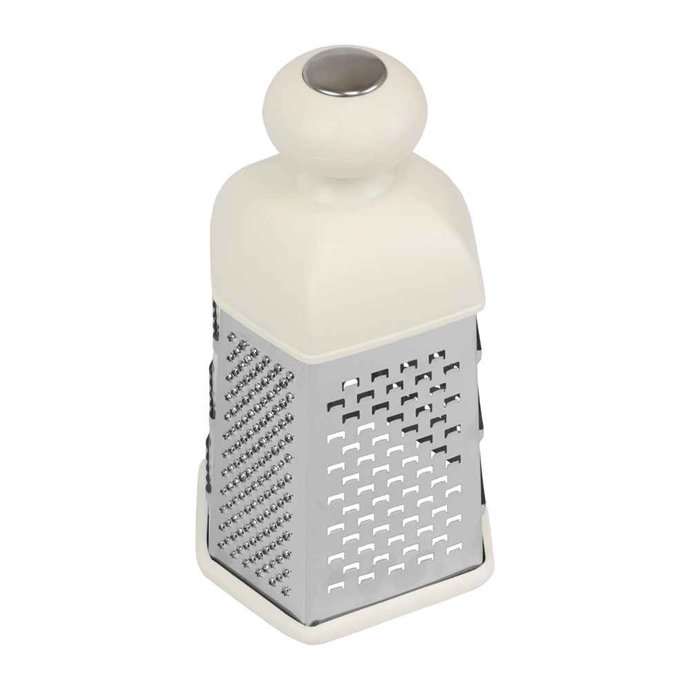Με ύψος 22 cm, αυτός ο τρίφτης διαθέτει έξι διαφορετικές επιφάνειες, καθεμία με συγκεκριμένη λειτουργία: λεπτή τρίφτη για φλούδες και μπαχαρικά, μεσαία τρίφτη για τυριά και σοκολάτα, χοντρή τρίφτη για λαχανικά και πατάτες, πλευρά με λεπίδα για κοπή σε φέτες και άλλους χρήσιμους συνδυασμούς για ψιλοκόψιμο ή φινίρισμα των υλικών. Η κατασκευή είναι σταθερή και η αντιολισθητική βάση επιτρέπει ασφαλή εργασία διατηρώντας εξαιρετικό έλεγχο της κίνησης.