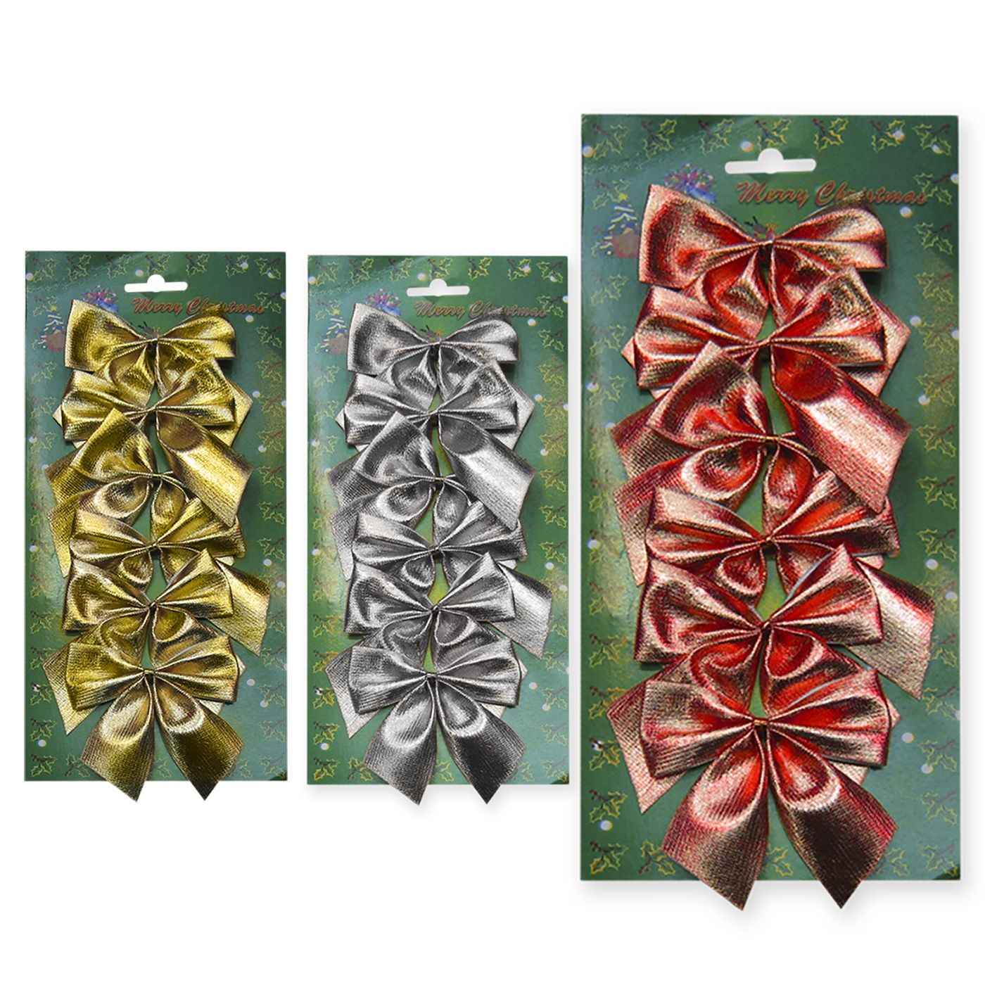 Set di 6 fiocchi decorativi di diametro 8 cm, ideali per decorazioni natalizie, confezioni regalo, ghirlande e addobbi per alberi. Offrono un risultato rapido e d’effetto nelle composizioni festive, risparmiando tempo nella decorazione. Adatti per uso domestico e commerciale, facile da posizionare e versatile in diverse applicazioni decorative.