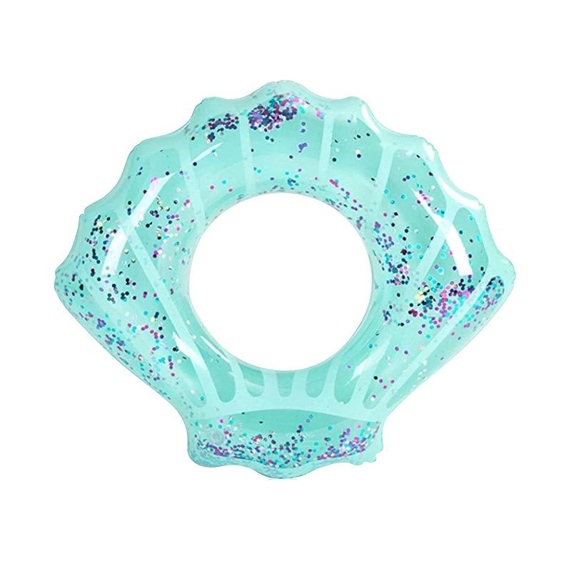 Παιδικό φουσκωτό σωσίβιο σε σχέδιο κοχύλι με glitter, από μαλακό και ανθεκτικό μη τοξικό PVC, διάμετρος 80 cm. Δεν αποτελεί σωστικό μέσο και πρέπει να χρησιμοποιείται μόνο υπό την επίβλεψη ενήλικα.