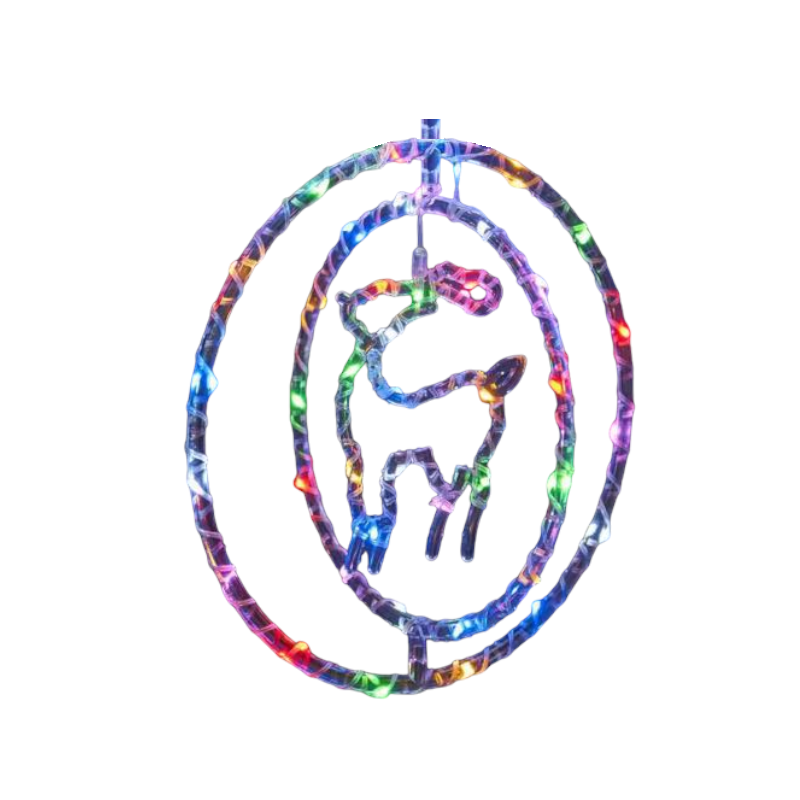 Χριστουγεννιάτικο φωτεινό διακοσμητικό 3D LED με διαφανείς κρίκους και σχέδιο. Πολύχρωμος φωτισμός που αντανακλά στη διαφάνεια και δημιουργεί ενα εντυπωσιακό εφέ. Διάμετρος: 32cm.