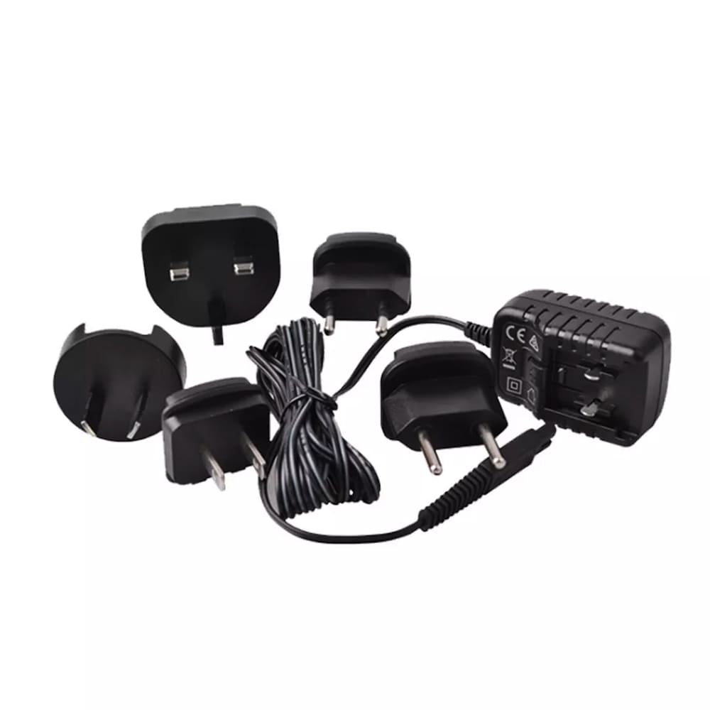 Τροφοδοτικό συμβατό με επαγγελματικές κουρευτικές μηχανές Profoil TS-01/TS-02, με αντάπτορες για ΗΒ/ΕΕ/ΗΠΑ. Ιδανικό για επαγγελματική χρήση σε κουρεία και κομμωτήρια.