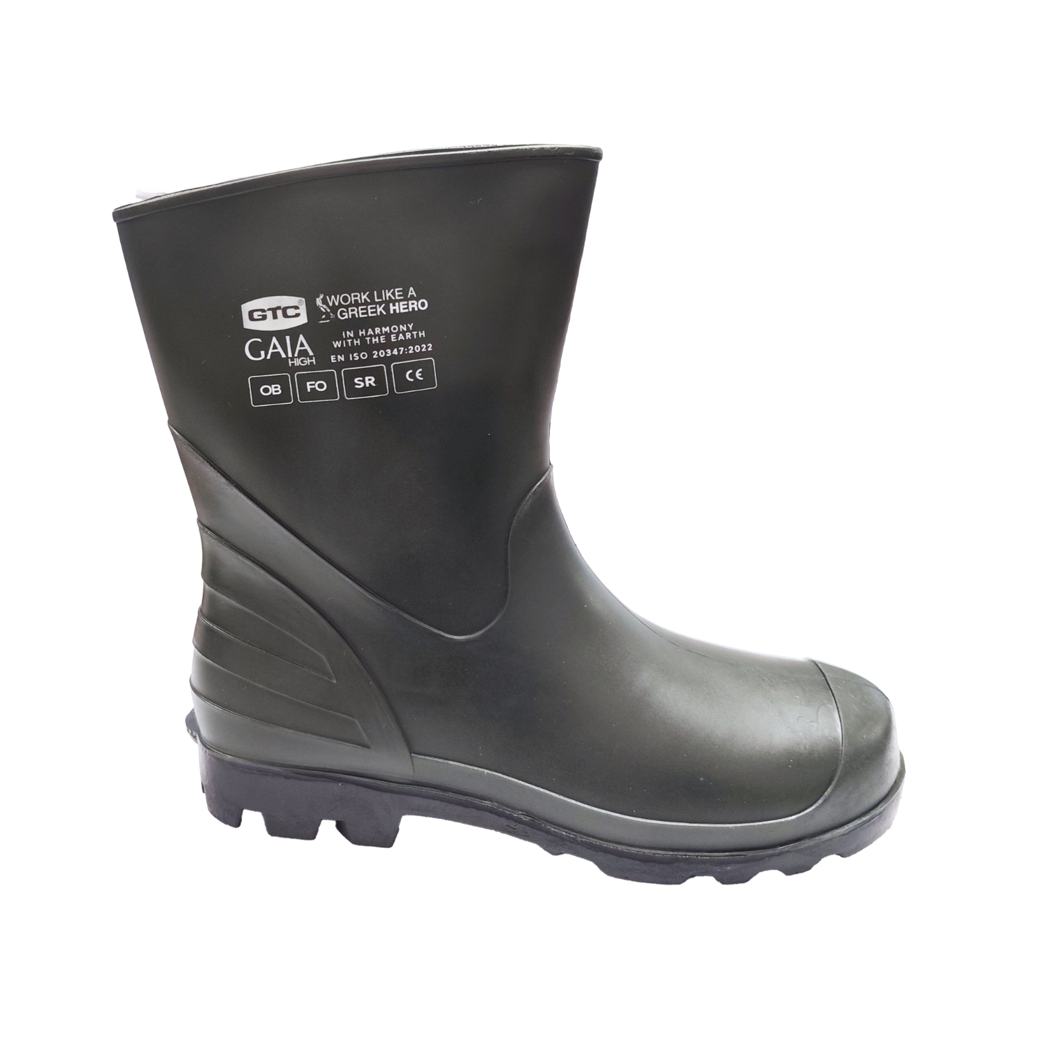 Οι μπότες κνήμης GTC Gaia PVC συνδυάζουν την αντοχή, την πρακτικότητα και την άνεση που απαιτεί η καθημερινή εργασία στη φύση. Κατασκευασμένες από ισχυρό PVC και εξοπλισμένες με μαύρη αντιολισθητική σόλα καουτσούκ, προσφέρουν εξαιρετική σταθερότητα σε λάσπη, νερό και ολισθηρές επιφάνειες. Η εσωτερική υφασμάτινη λευκή φόδρα εξασφαλίζει άνετη εφαρμογή, ενώ η πλήρης αδιαβροχοποίηση καθιστά τις μπότες ιδανικές για αγροτικές, κηπουρικές ή υπαίθριες εργασίες. Με σχεδίαση που αντλεί έμπνευση από τη θεά Γαία, αποτελούν μια αξιόπιστη επιλογή για όσους εργάζονται κοντά στη γη και χρειάζονται προστασία σε κάθε βήμα.