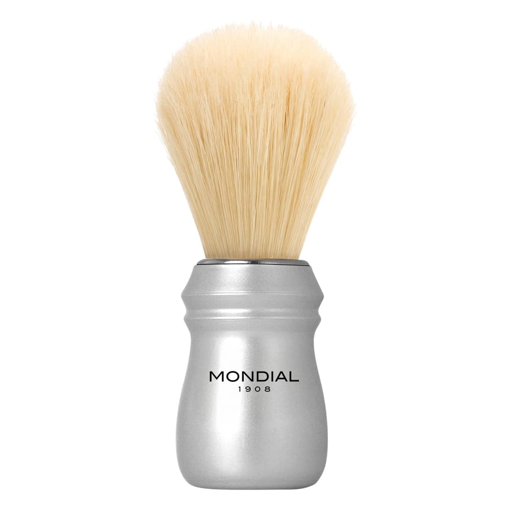 Mondial πινέλο ξυρίσματος από λευκασμένη τρίχα με λαβή από σατινέ αλουμίνιο