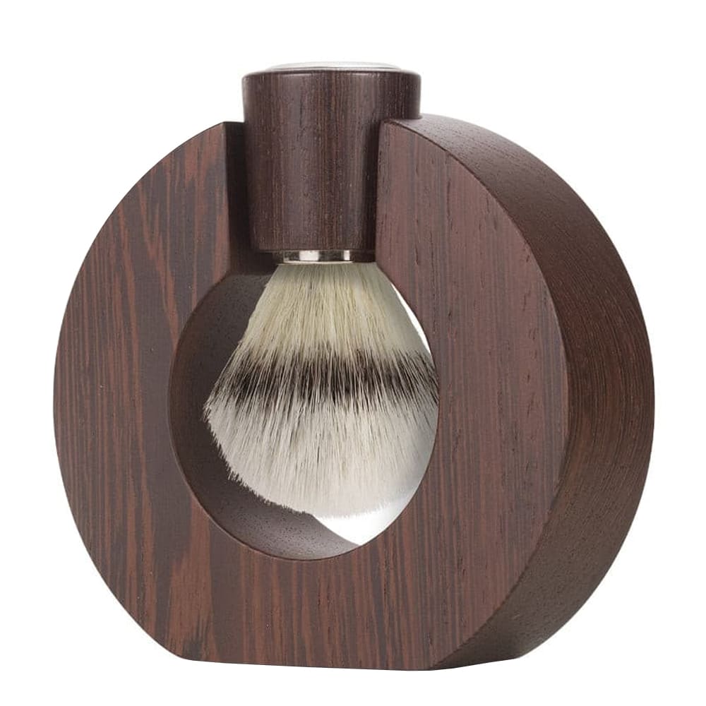 Το πινέλο από ασβό Silvertip – η απόλυτη κορυφή του παραδοσιακού ξυρίσματος – προσφέρει φυσικά απαλά τρίχες, ικανές να δημιουργήσουν έναν πλούσιο αφρό και να μαλακώσουν το δέρμα χωρίς να το ερεθίζουν. Η λαβή, γυαλισμένη από το ίδιο κομμάτι wengé, εξασφαλίζει εργονομική λαβή και ιδανική ισορροπία.