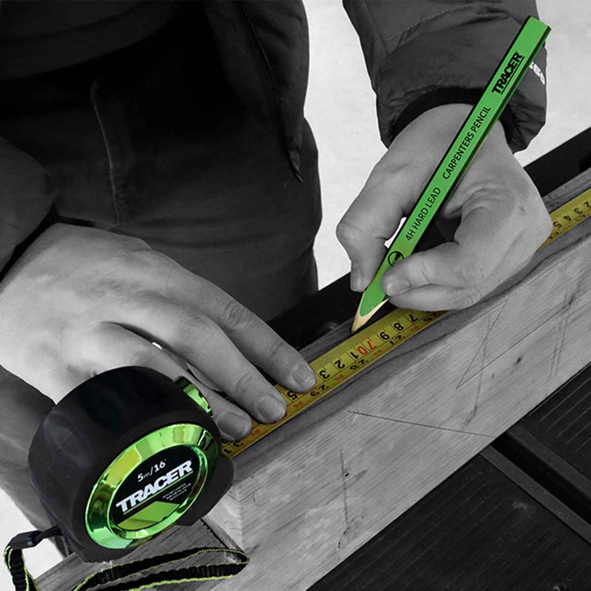 Περιγραφή: Το μολύβι TRACER Carpenters είναι ένα μολύβι 4H βαρέως τύπου κατάλληλο για σήμανση κατασκευής γενικής χρήσης. Παρέχεται σε συσκευασία 12 τεμαχίων, συμπεριλαμβάνει και ξύστρα. Είναι μια τέλεια προσθήκη δίνοντας εύρος μέτρησης και σήμανσης. Ιδανικό για σήμανση σε ξύλο και γυψοσανίδα με αξιόπιστη έντονη σήμανση.